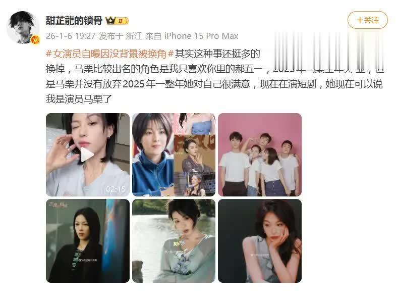 据网友1月6日爆料,90后演员马栗在社交媒体上的一番自曝,像一颗石子投入湖心,在娱乐圈这潭深水中激起了不小的涟漪。她坦言,自己通过长达三个月的面试,好不容易争得某剧女二号的角色,却在临开机前突遭替换,原因直指自己“没有背景资源”。这番遭遇,连同她“七八年演员生涯兜比脸还干净”的辛酸,以及家人屡次翻出经纪合同劝她“女孩子没必要折腾”转行的压力,瞬间点燃了全网对娱乐圈资源分配与行业不公的深度讨论。